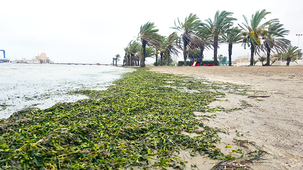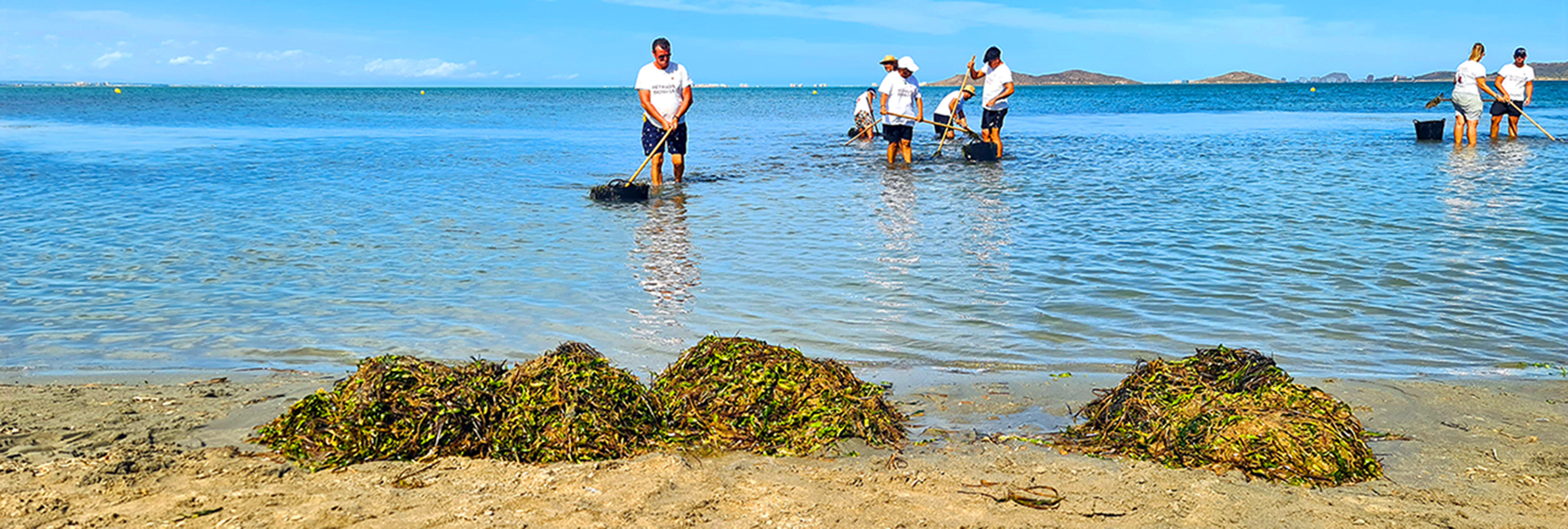 La proliferación incontrolada de algas que está ocurriendo en el Mar Menor produce toneladas de arribazones que deben ser retiradas a mano y casi a diario para evitar el mal olor y un mayor deterioro de este Mar eutrofizado. La biomasa de algas recogida se descarta en instalaciones autorizadas y se va acumulando.