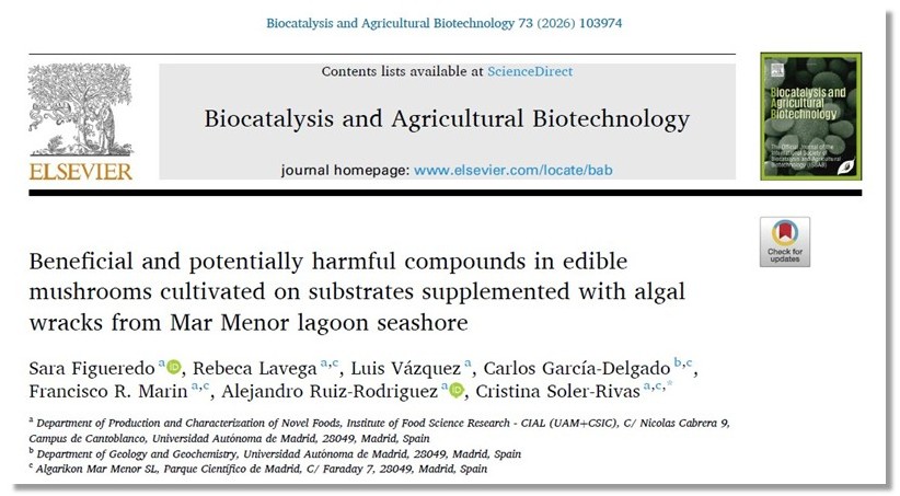 Soler Rivas, C., et al…. Sustrato a base de vegetales marinos apto para el cultivo de hongos comestibles. P202430026. Entidades titulares: UAM y CTICH. Empresa que la está explotando: Algarikon Mar Menor S.L.