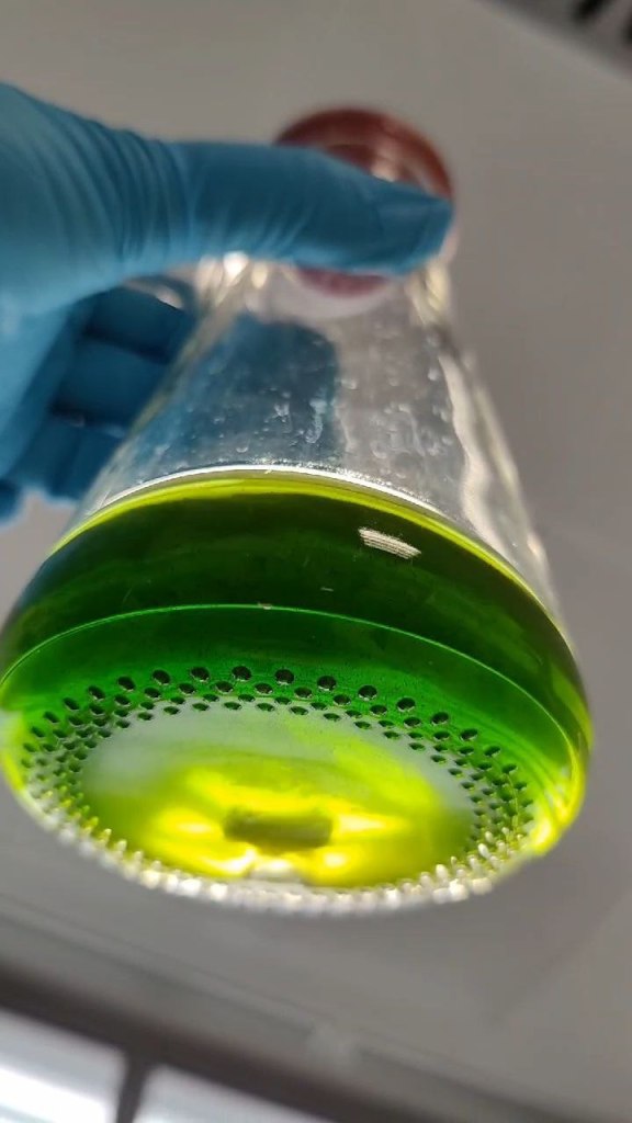 La mitad de la muestra de algas se dializó (se le quitó la sal) en el laboratorio, la otra mitad se dejó tal cual. El micelio de algunos hongos comestibles no tuvo ningún problema en crecer sobre el residuo marino en una placa Petri, tampoco parecía retrasar su crecimiento el que el medio contuviera algas sin dializar.