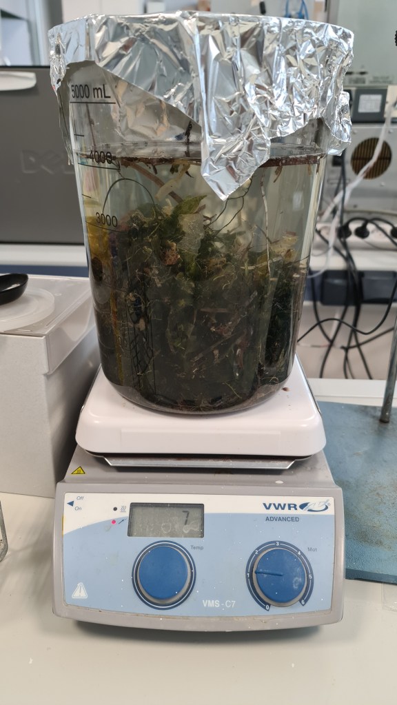 Desde que empezó el proyecto hemos estado recogiendo algas de arribazones en diversas playas, estudiando las diferentes especies que constituyen las muestras tomadas en las cuatro estaciones y realizando análisis de sus composiciones. También tomamos varias muestras de una de las plantas de reciclaje donde se acumula la biomasa recolectada.