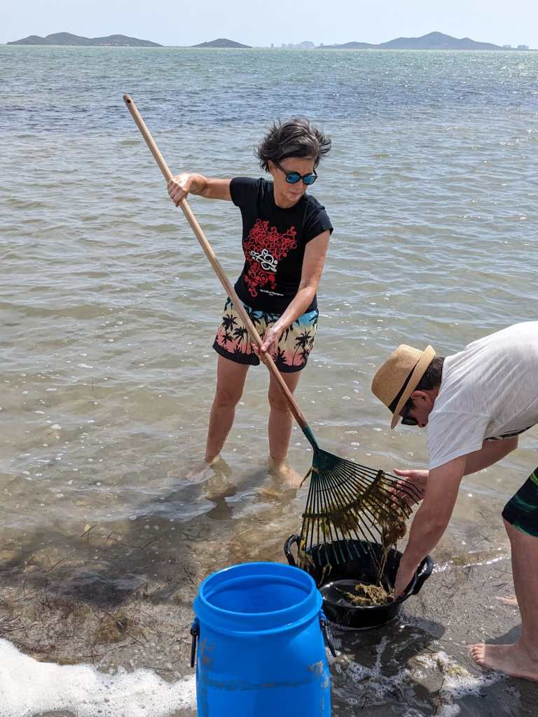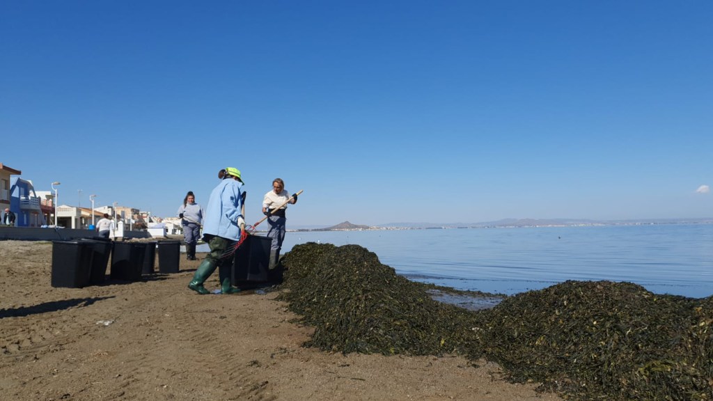 El Servicio de Pesca y Acuicultura de la Comunidad Autónoma de la Región de Murcia, la Dirección General del Mar Menor y las empresas subcontratadas que trabajan recogiendo la biomasa de las orillas ayudaron en la recogida masiva. También los operarios de la planta de reciclaje de RECICLESAN nos facilitaron la tarea y nos dejaron un espacio para realizar pruebas y prepararlas para su transporte.