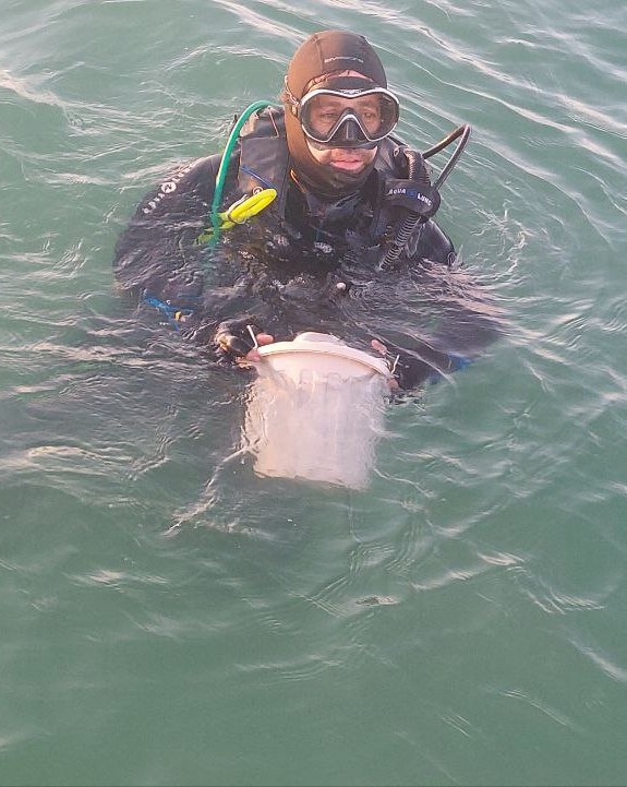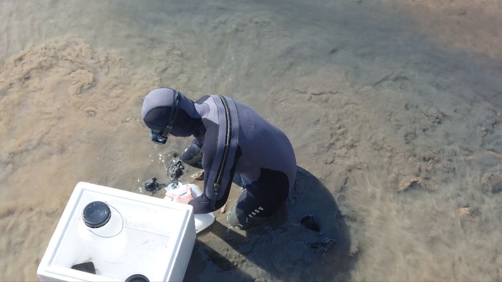 Para el desarrollo de Algarikon-zero volvimos a bucear para tomar muestras de lodos de diferentes zonas del fondo de la laguna