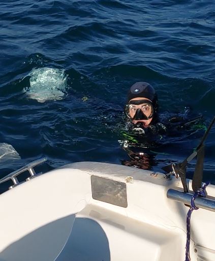 También necesitamos recoger un poco del cieno anaeróbico que se acumula en los fondos del Mar Menor y probarlo como inoculo para realizar digestiones de las algas es decir, para evaluar su capacidad de producir biogás en biorreactores (metano) que pueda ser transformado en energía. Para ello, una parte del equipo del CIEMAT se desplazó en barco junto con buzos a una zona profunda para tomar muestras.