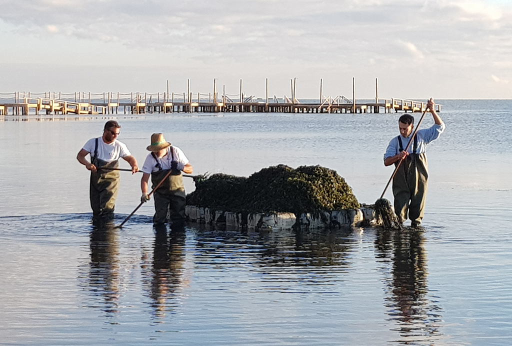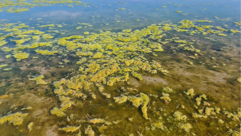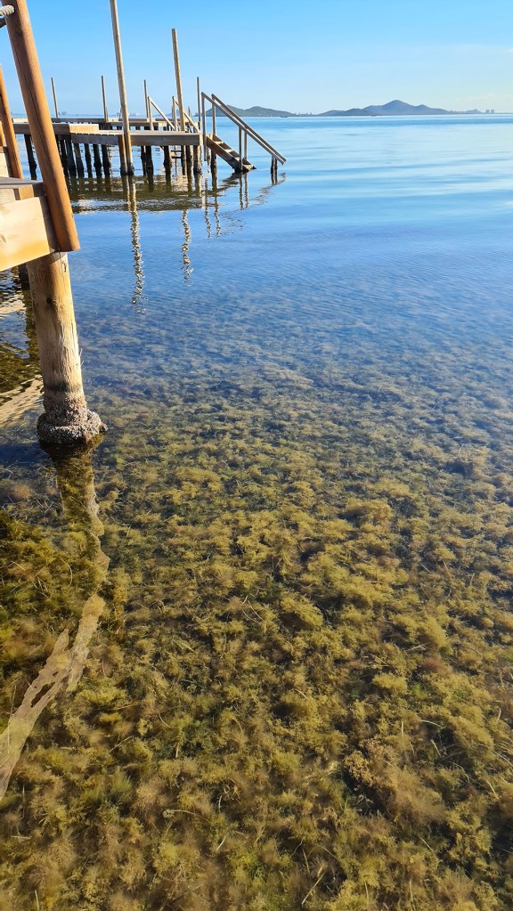 En los últimos años, ha aumentado la mezcla de algas mucilaginosas llamadas “ova» (mezcla de Chaetomorpha linum y varias especies de Cladophora sp) que enturbian las aguas, dándole el color verdoso. Estas algas se fijan a las piedras u otras algas y se acumulan en las zonas poco profundas. Las proliferaciones de ova eran frecuentes en la zona norte del Mar Menor en los años 80, antes de que se estableciera la red de saneamiento y las depuradoras de aguas residuales urbanas. Hoy en día se han producido nuevos afloramientos por la incorporación de aguas dulces del campo de Cartagena y el drenaje continuo desde las capas subterráneas saturadas de agua, puesto que las antiguas tierras de secano son ahora de regadío y con cultivos intensivos.